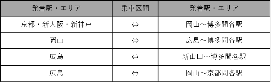 (例:新神戸から岡山まで1回乗車と広島から新山口まで1回乗車で、2回乗車とカウントします。)