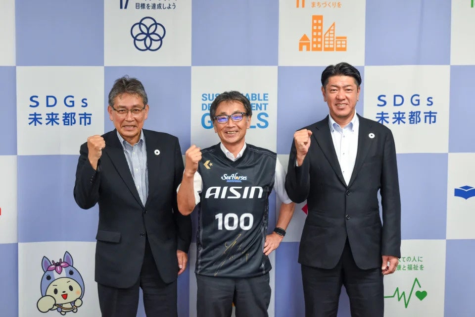 7月31日(水)、取締役社長・寺部康弘が知立市の林郁夫市長を表敬訪問し、2023-24シーズンの活動報告と今シーズンに向けての意気込みをお伝えしました。