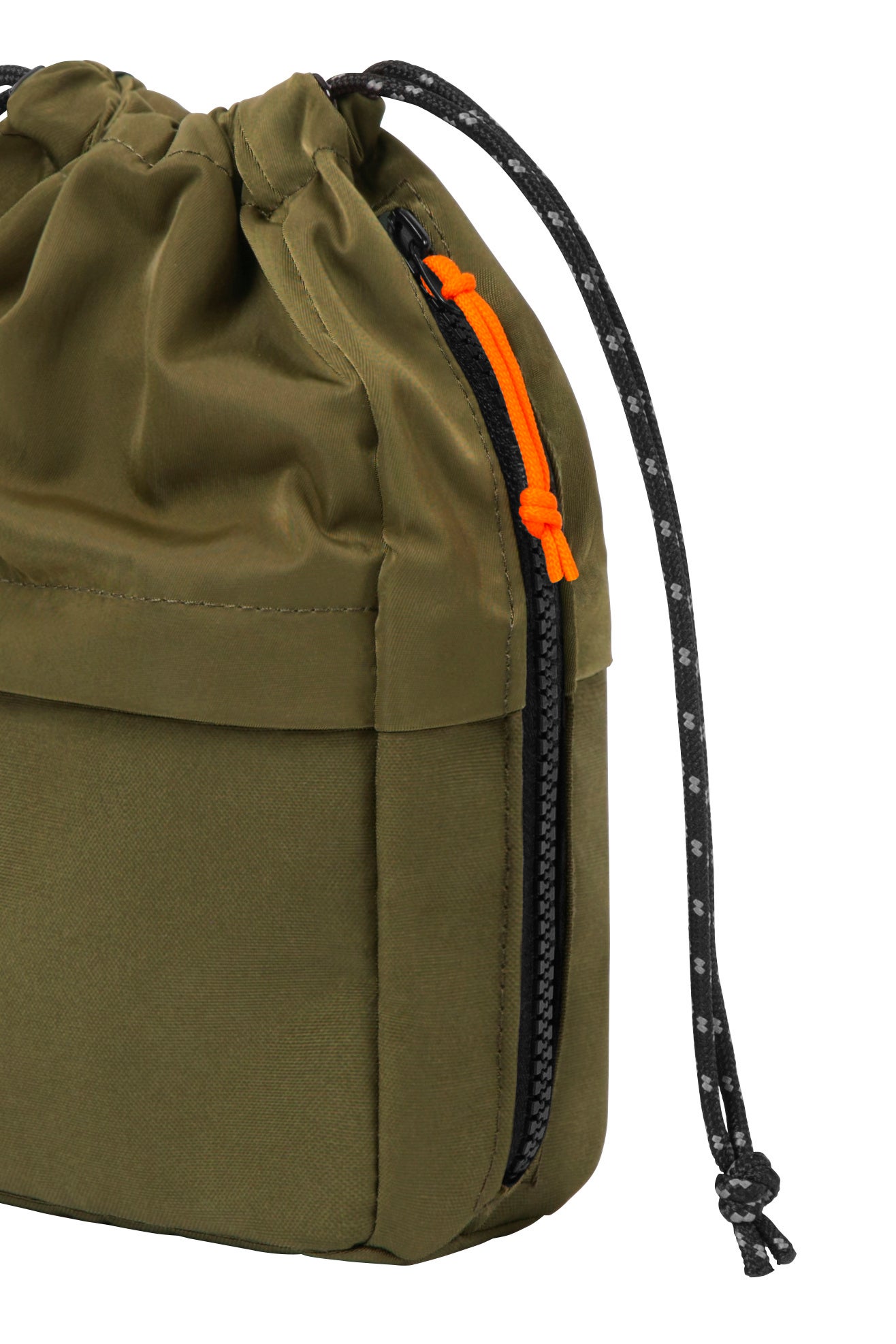 また、本体の側面にファスナーがついており、巾着を絞ったままでもさっと物を取り出せます。