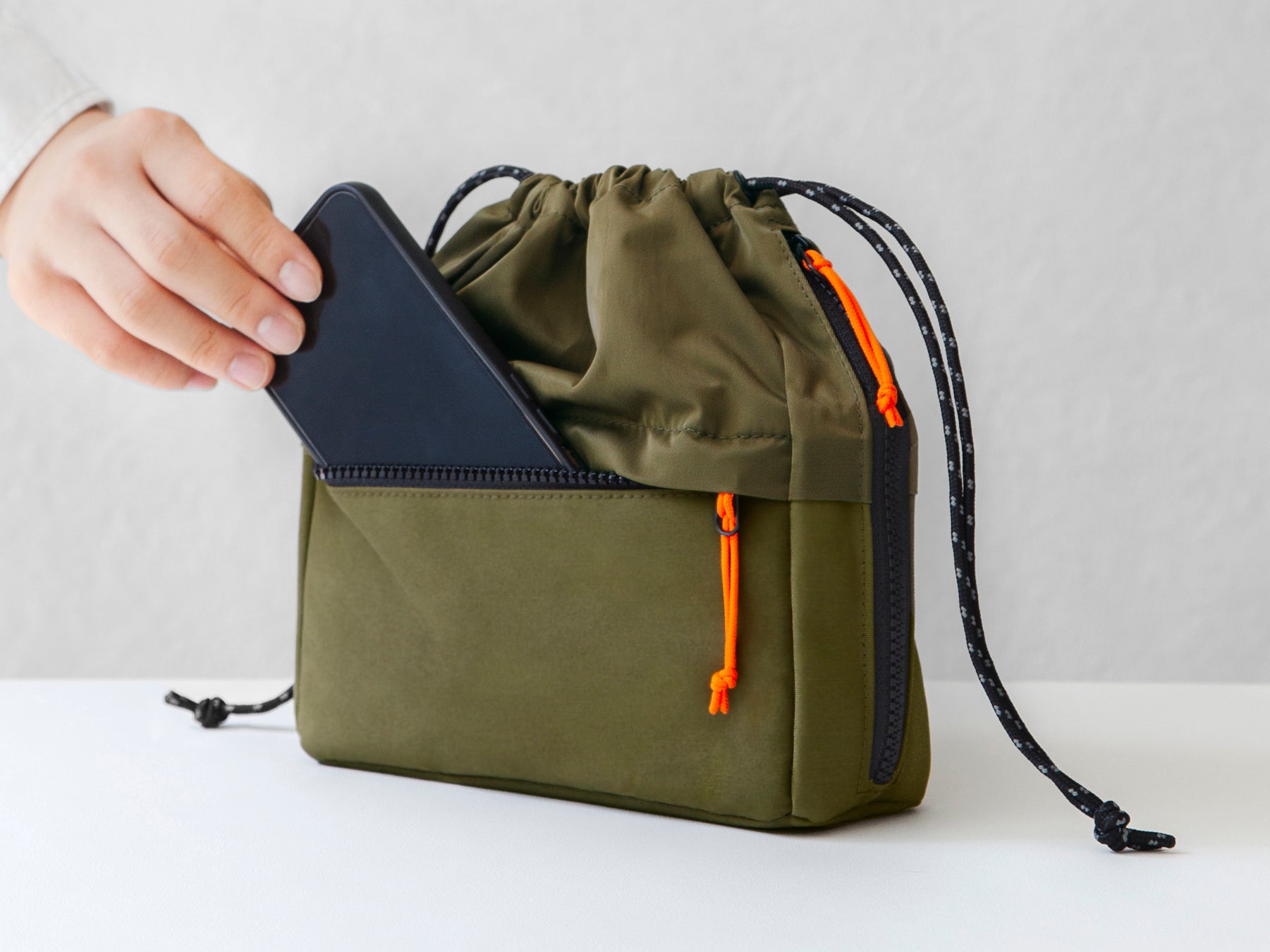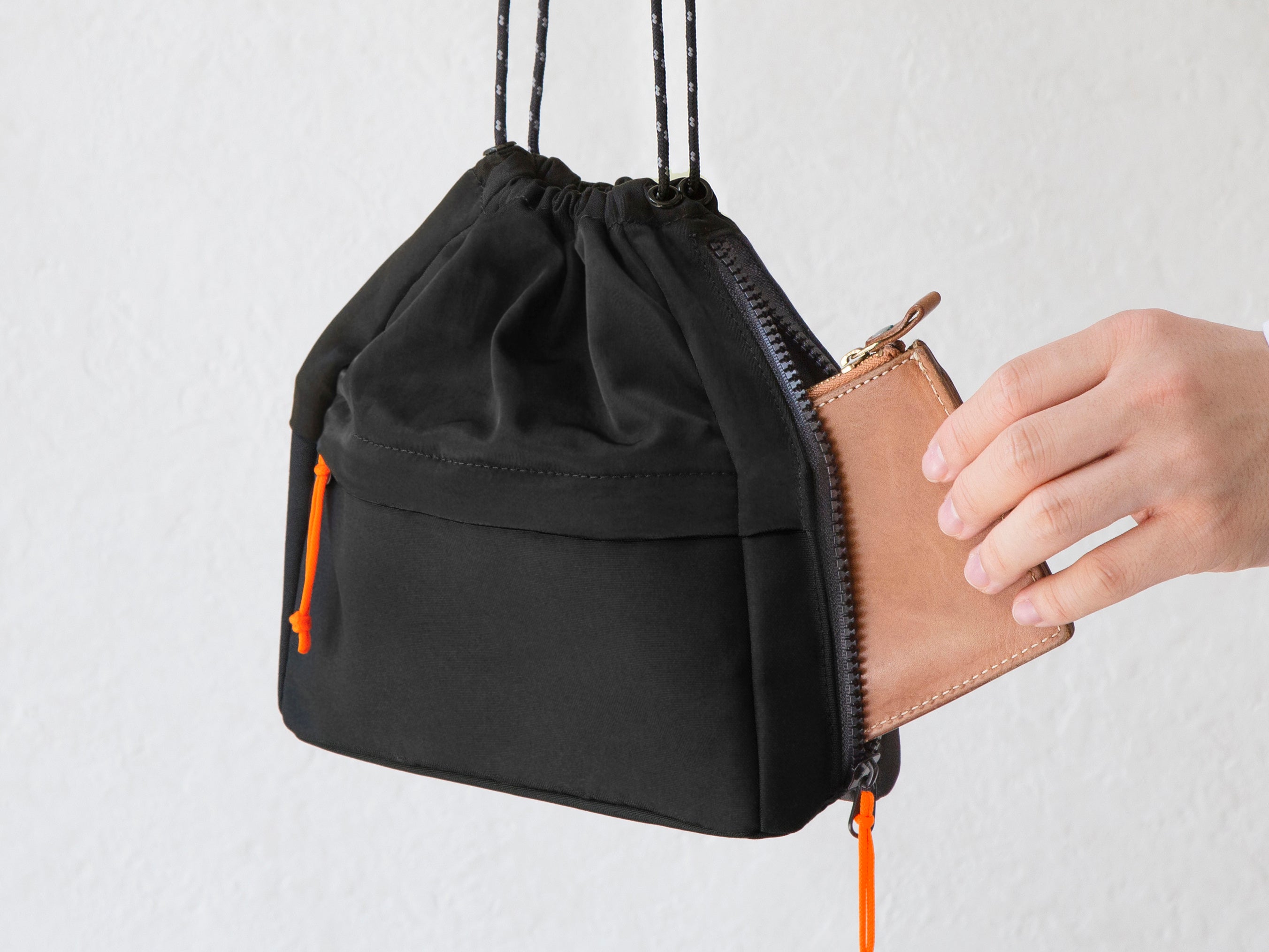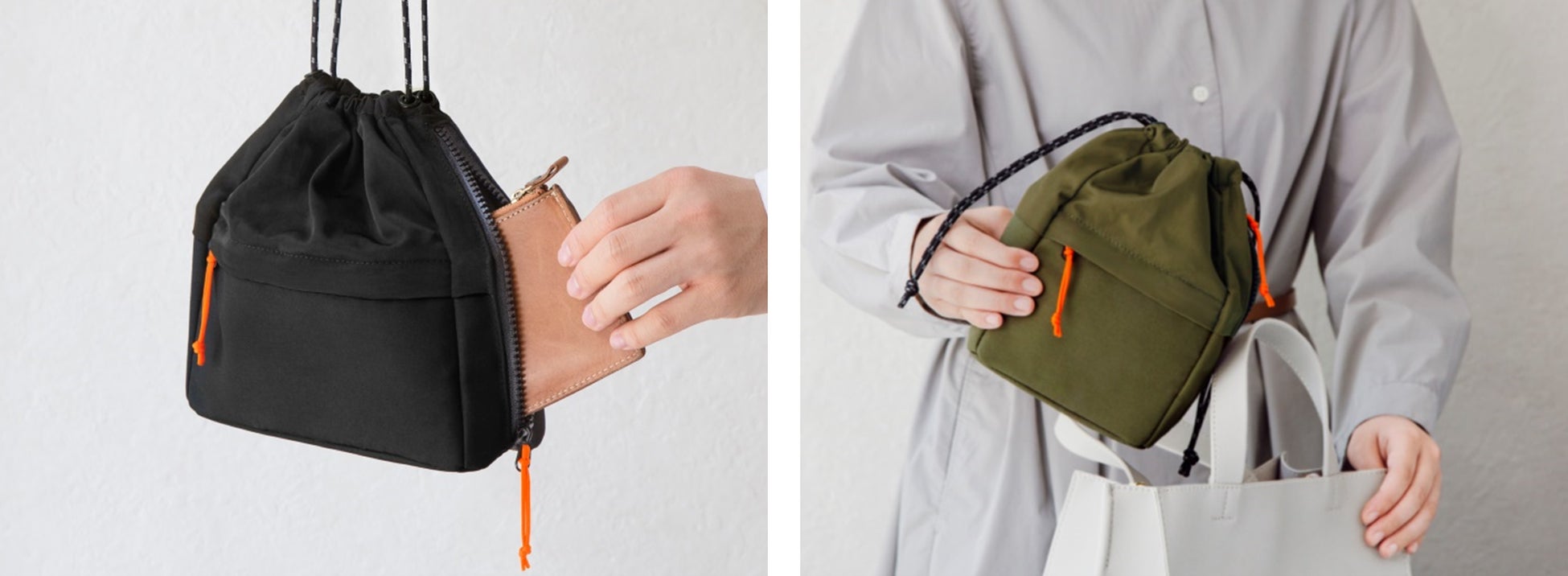 カバンの中でも外でも2wayで使える!物が取り出しやすい巾着型ポーチ 「ハンディポーチ」発売