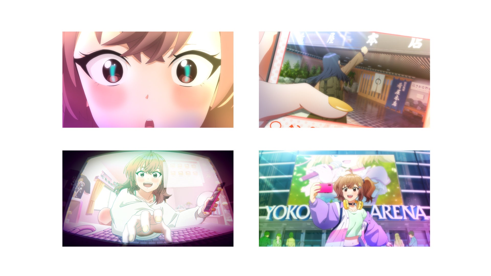 オリジナルアニメーションで制作された本作では、声優に鬼頭明里さんとLynnさんを起用。二人が声を担当するカスミ(CV.鬼頭明里)とマナ(CV.Lynn)のキャラクターデザインは、イラストレーターのけーしんさんが担当しました。気鋭の音楽ユニット・ツユが書き下ろした「これだからやめらんない!」をバックに、聖地巡礼、コラボカフェでの推し活フォト、ライブ参戦などを楽しむカスミとマナの様子が描かれます。アニメは視聴して楽しむことはもちろんのこと、新しい出会いや色々な楽しみ方へとつながるエネルギーをくれるもの、というコンセプトを表現するCMとなりました。