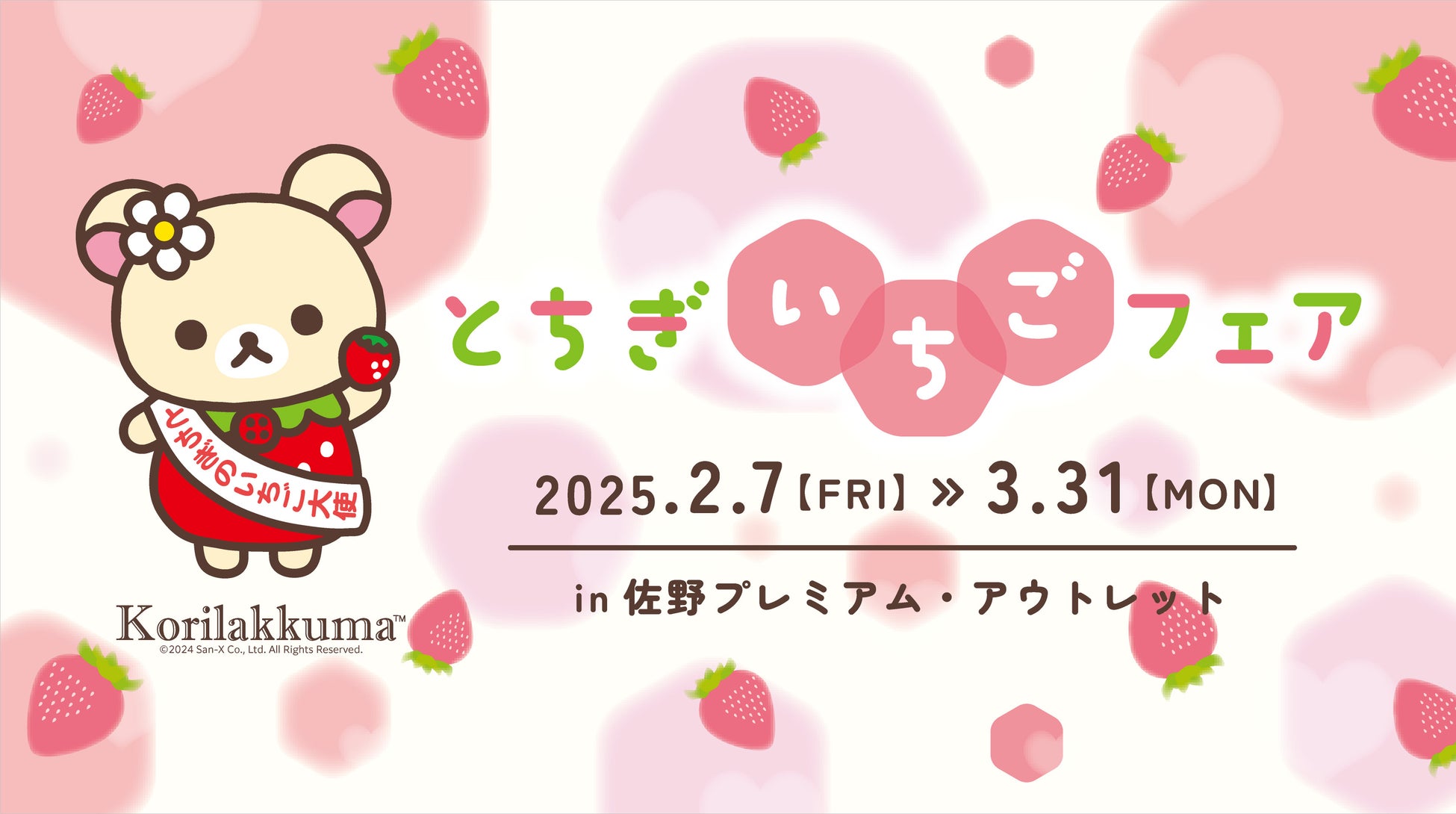 とちぎのいちご大使コリラックマが登場!佐野アウトレットでいちごフェア開催 限定いちごスイーツ販売に、コリラックマのグリーティングやフォトスポットも 2月7日(金)~