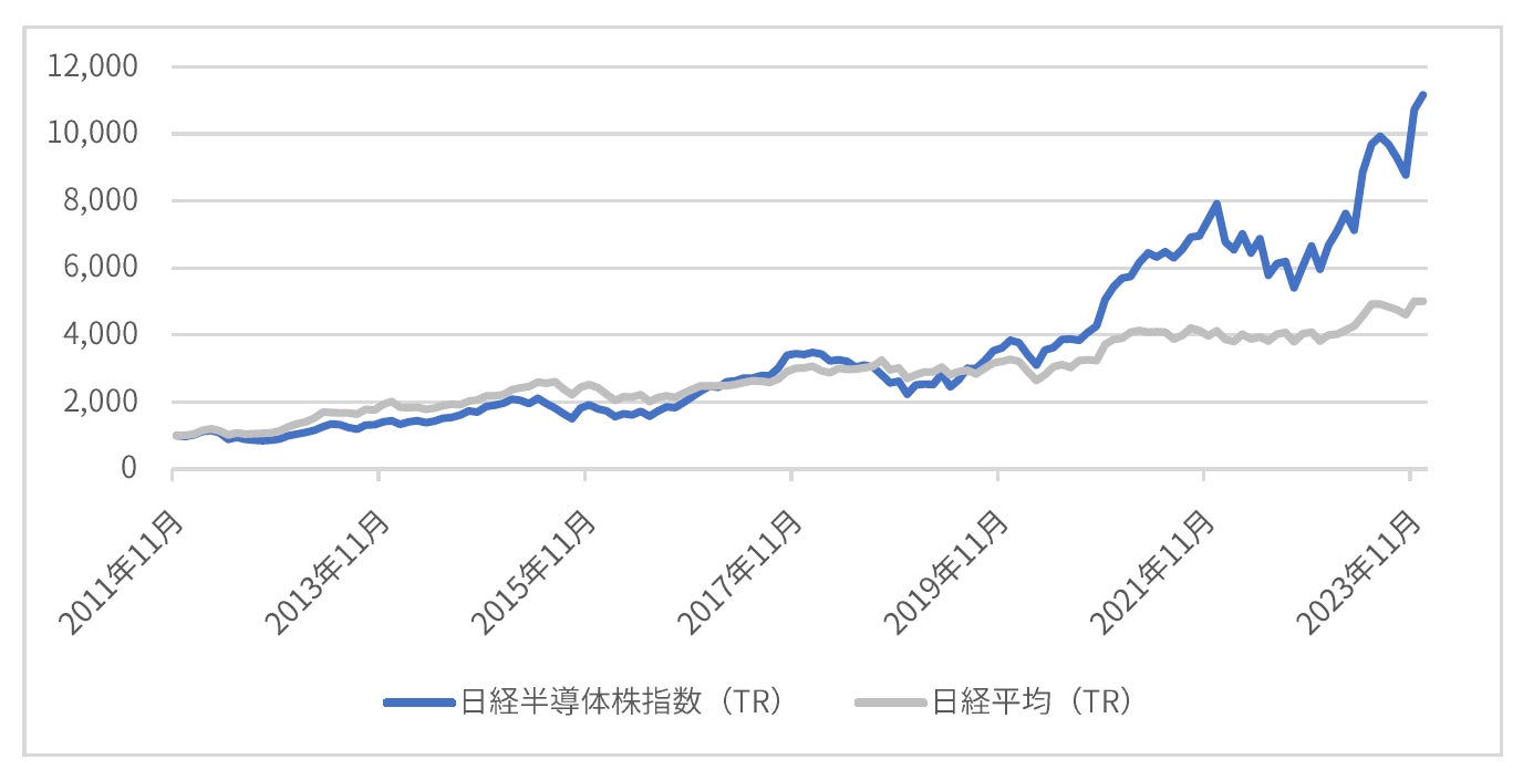 半導体は近年、日本の株式市場を大きく左右する重要なテーマとなっています。戦略的資源としての認識の高まりから各国・地域の政府は自国の半導体製造に関する政策を打ち出しています。日本においても政府の支援策を背景に半導体業界の動向に注目が集まっています。日本の半導体は、製造装置や素材の分野で高いシェアを誇り、パワー半導体やイメージセンサーの領域でも成長が期待されています。このような状況をふまえ、日本の半導体関連銘柄の値動きを表す指数を開発しました。東京証券取引所に上場する半導体関連銘柄のうち、時価総額が大きい30銘柄で構成します。素材関連の銘柄も対象とし、より業界の動向を表すようにしました。