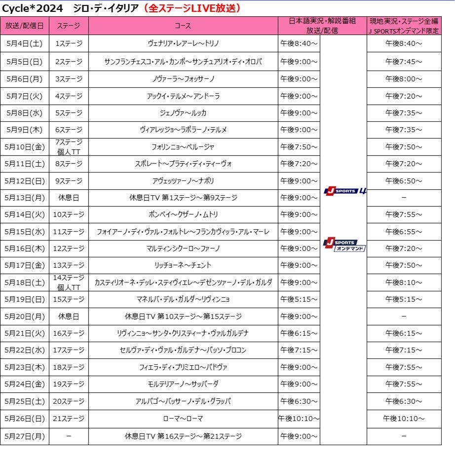 Cycle*2024 ジロ・デ・イタリア 放送・配信スケジュール