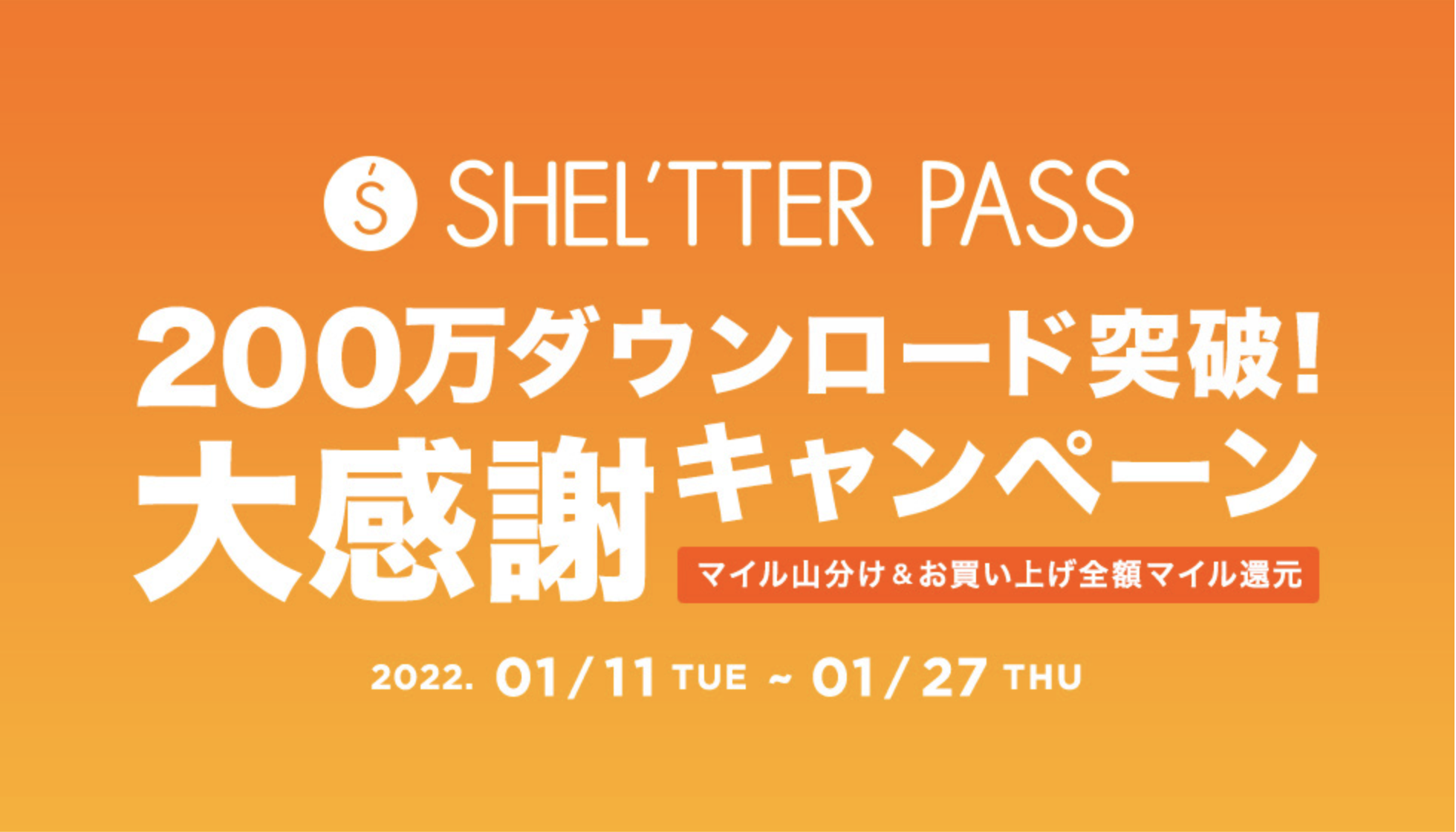 「MOUSSY(マウジー)」などのファッションブランドを展開する製造小売会社、株式会社バロックジャパンリミテッド(本社:日本・東京都目黒区、代表取締役社長:村井博之、以下「当社」)が提供するショッピングアプリ「SHEL'TTER PASS(シェルターパス)」が累計200万ダウンロードを達成いたしました。