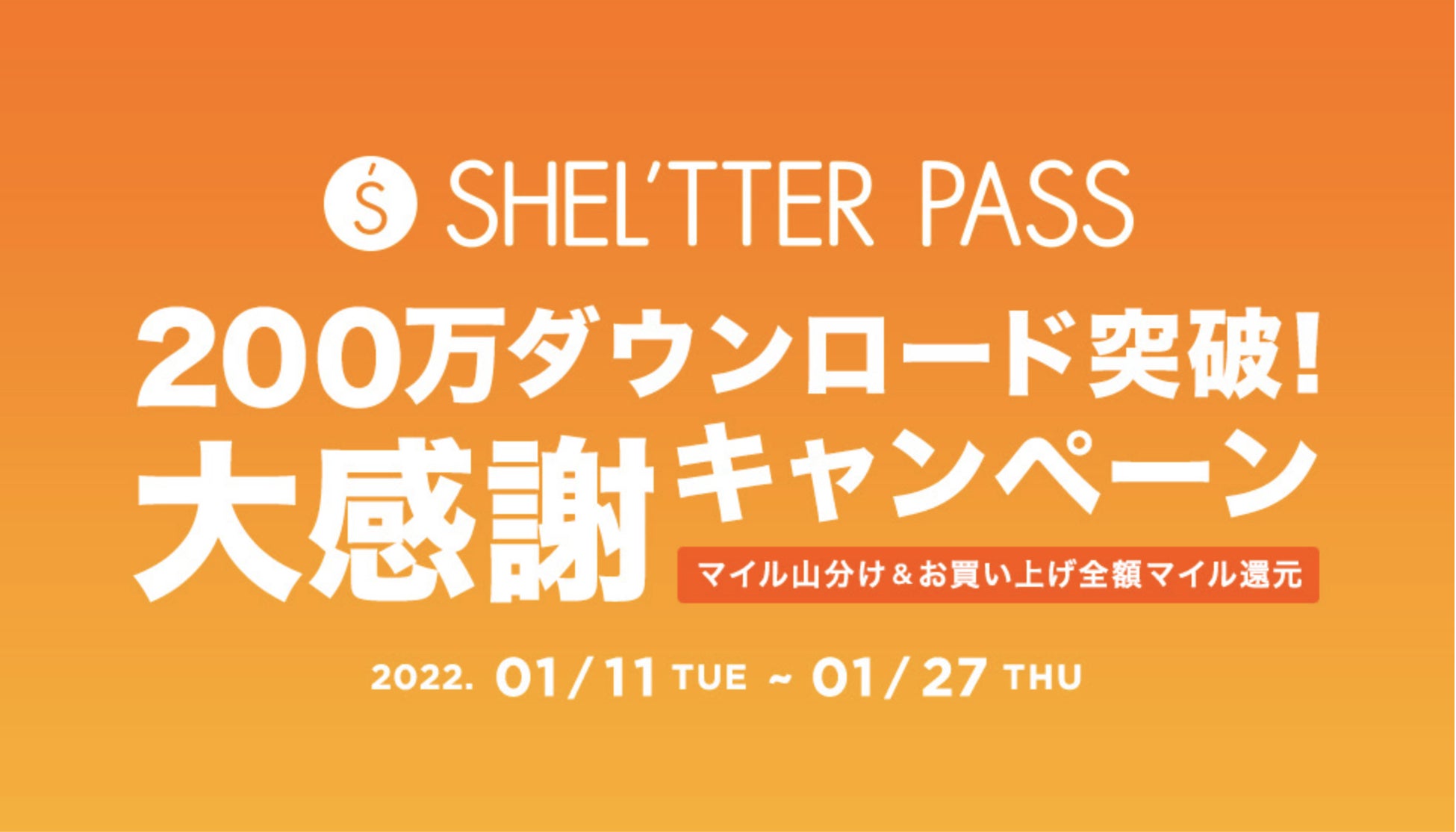 バロックジャパンリミテッドの「SHEL'TTER PASS(シェルターパス)」アプリが200万ダウンロードを達成!
