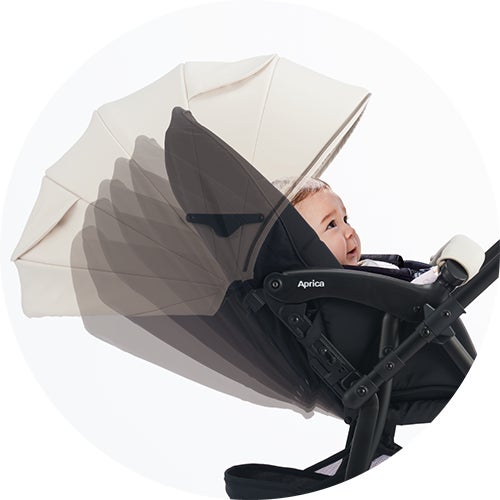 赤ちゃんの様子を見ながら、片手で簡単リクライニング。