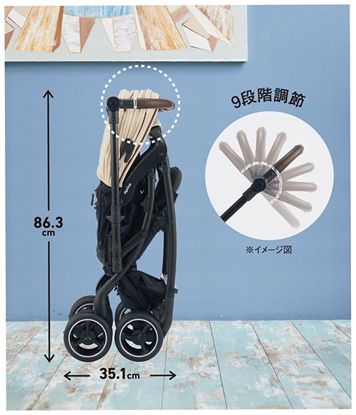 ・赤ちゃんを乗せたまま対面⇔背面をハンドル切り替え可能。
