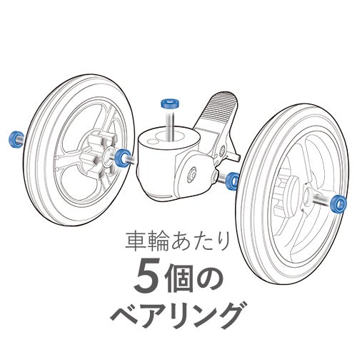 車輪あたり5個、合計20個も内蔵。押し始めが軽く、旋回性も向上。※