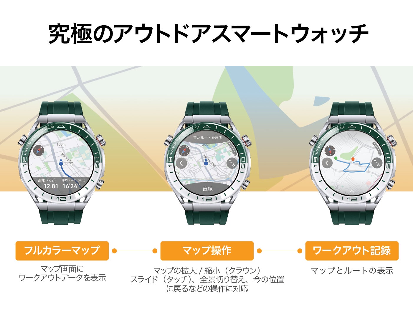 そのほか、新たにカラーマップや等高線マップを、スマホアプリ「HUAWEI Health」からダウンロードしてウォッチにインポートすればオフラインで使用可能となりました。『HUAWEI WATCH Ultimate』のエクスペディションモードをはじめ、ランニング、登山、トレイルランニングのワークアウト中、マップを使ったサポート機能も充実しています。