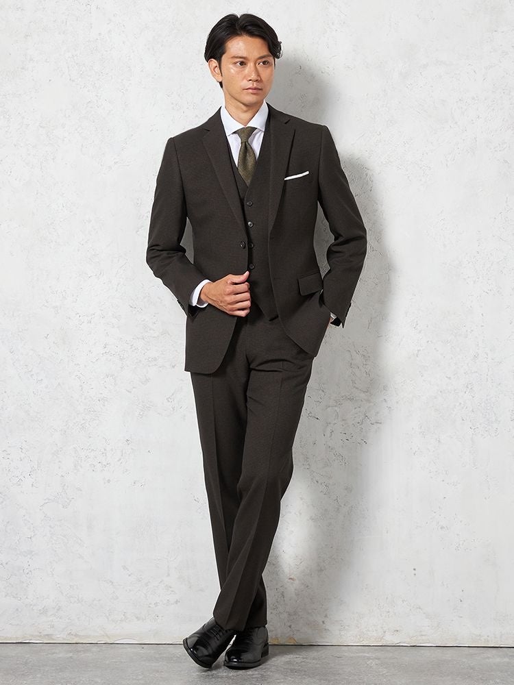 ベーシックで着まわしやすい色柄のバリエーションは変わらず、新たに秋冬シーズンに向けてベスト付きのスリーピーススーツを加えたラインアップとなっております。