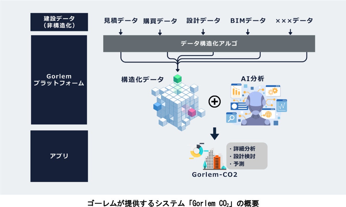 ゴーレムは、不動産・建設業界に特化したスタートアップです。AIを活用した独自のデータプラットフォーム(データ構造化基盤)を用いて、CO2排出量の算定や見積価格の最適化などを実現。データに基づいた事業変革を支援しており、大手ゼネコンやデベロッパーへの豊富な導入実績を通じて、不動産・建設業界におけるDX推進において確かな技術力と実績を有する企業です。