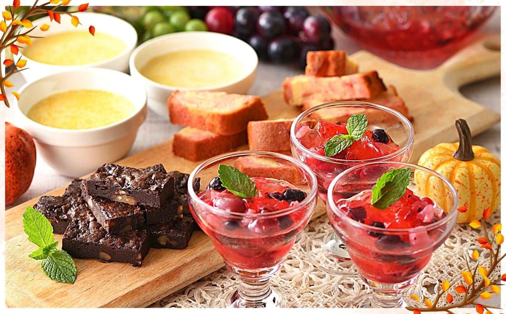 そして、スイーツでは、彩り鮮やかなふるっふるジュレの中に、紅色のレッドルビーと数種のベリーをちりばめた『ぶどうとミックスベリーのジュレ』と、お好みのトッピングで楽しめる、まろやかでこく深い『かぼちゃのココナッツ汁粉』。どちらも食後のリラックスタイムに最適なほっこりメニューとなっております。