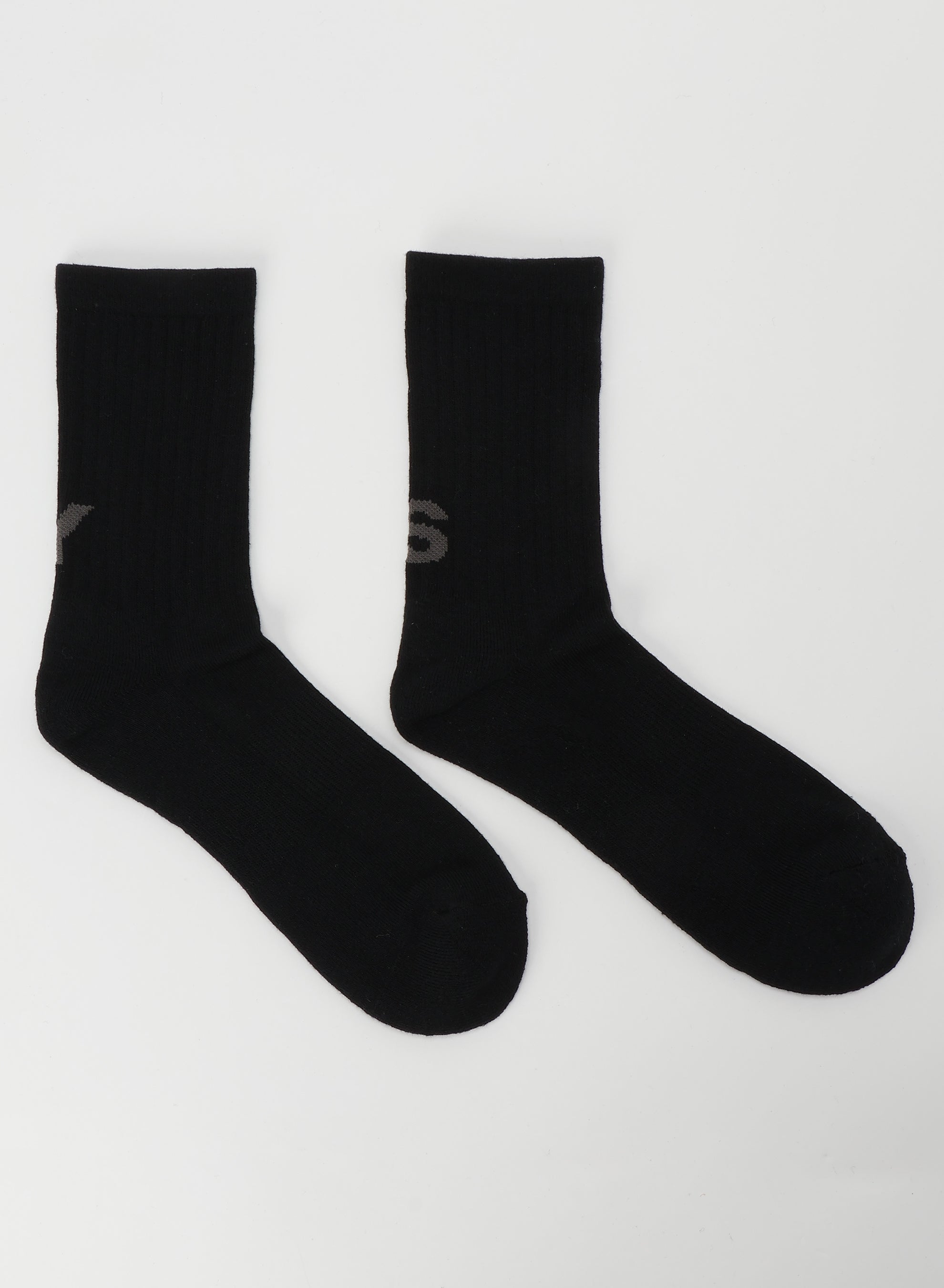 「Y」と「S」が踵の上に配されたミドル丈のリブソックス。