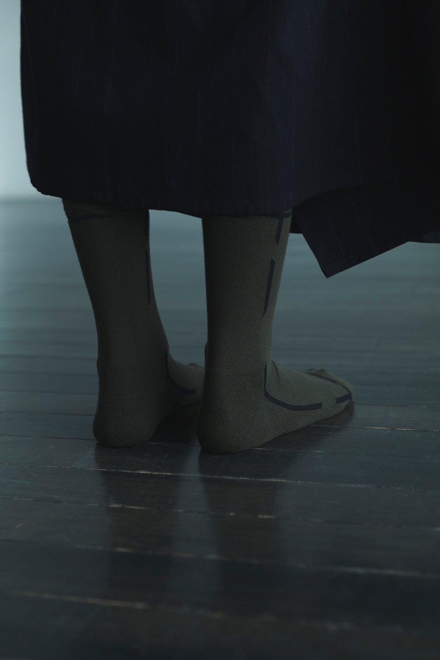 シックストックス定番の「ライン」をかすれて途中で途切れたような表現でデザインしたハイゲージソックス。