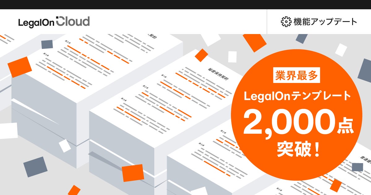 株式会社LegalOn Technologies(本社:東京都渋谷区 代表取締役 執行役員・CEO:角田 望)は、AI法務プラットフォーム「LegalOn Cloud」(https://www.legalon-cloud.com/ )にて、「LegalOnテンプレート」に格納される契約書等のひな形が業界最多※の2,000点を突破したことをお知らせいたします。