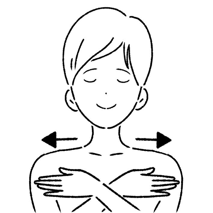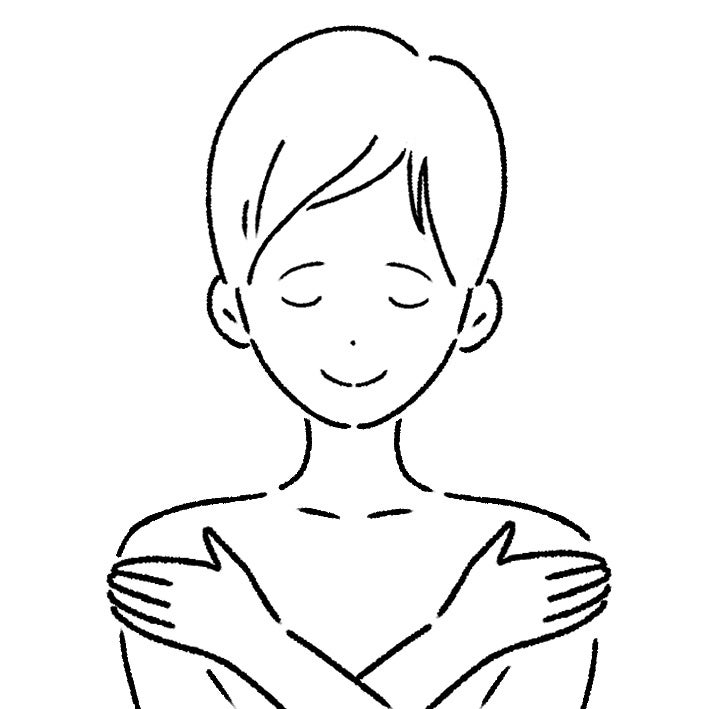 手のひらで自分の身体に触れるとオキシトシンが出ます。また、触れることで慈愛ができるので、入浴×さすることの2つに幸せの相乗効果があります。自分に触れると内側に意識が行きやすくなり、自分がクリアに見えてきます。湯船に浸かって手で身体をゆっくりとさすったり、ボディウォッシュ時も手で身体を洗うようにするとオキシトシンが出ます。セルフハグも効果的です。