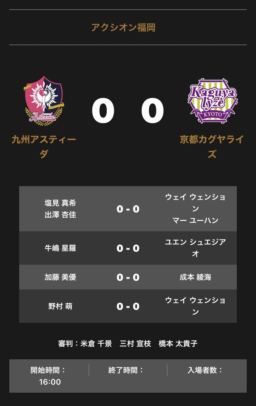 九州アスティーダ vs 京都カグヤライズ の対戦オーダーが発表されました。