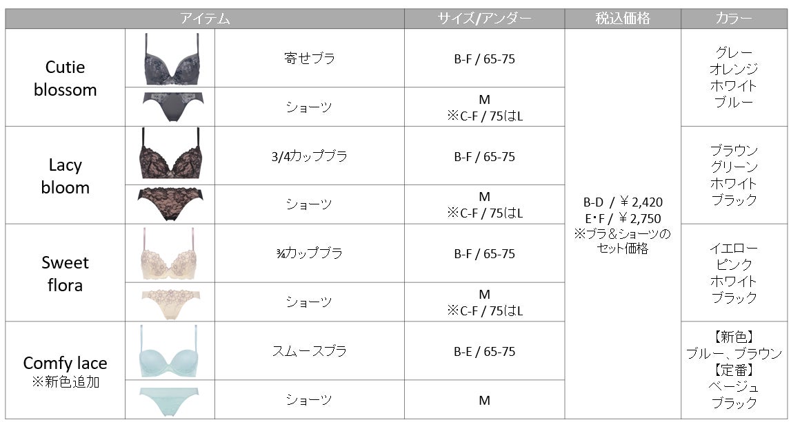 今シーズンは3シリーズの新デザインがエントリー。夏のスムースブラとしても人気の「コンフィーレース」には、新色が仲間入りしました。