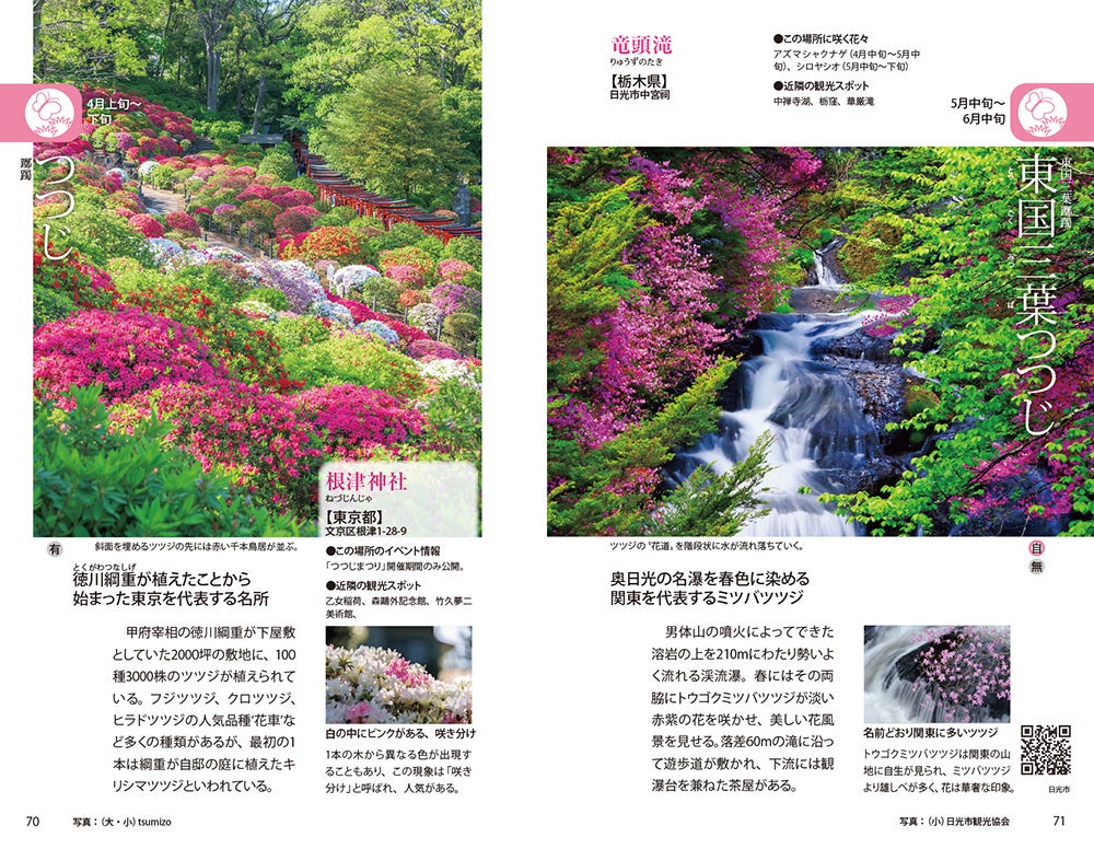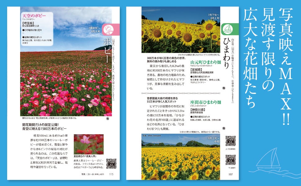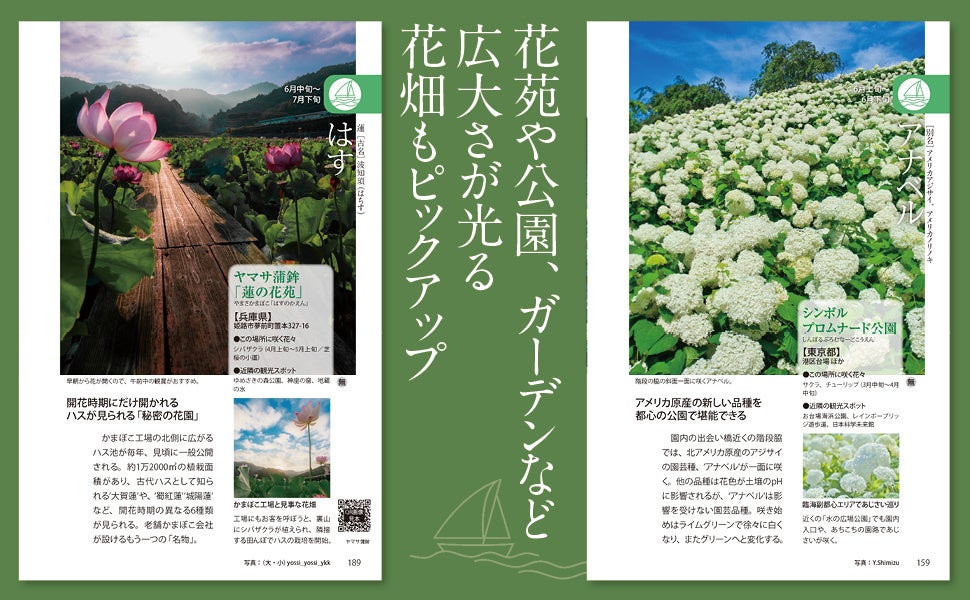 花の情報や見頃の時期、近隣の観光情報も収録。四季折々の花めぐり旅の計画にもお役立ていただけます。