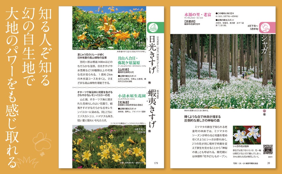 知る人ぞ知る撮影スポットや、絶滅が危惧される希少な種の花写真も掲載しています。