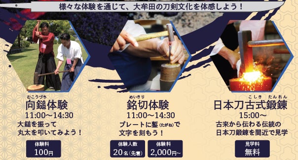 ぜひこの機会に、普段なかなか見ることができない、迫力のある日本刀鍛錬の様子ご覧いただきながら、大牟田の刀剣文化を肌で感じ、体感してみてください!