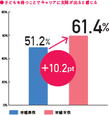 ・男女ともに半数以上が子どもを産み育てることが仕事・キャリアに影響を及ぼすと感じている