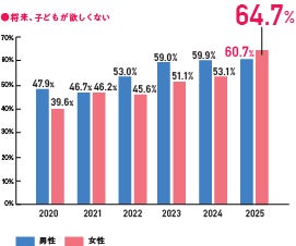 子どもを望まない若年未婚男女、初めて女性が男性を上回り64.7% 望む・望まないの選択や妊活において「仕事・キャリア」が影響―ロート製薬 『妊活白書2025』を公開