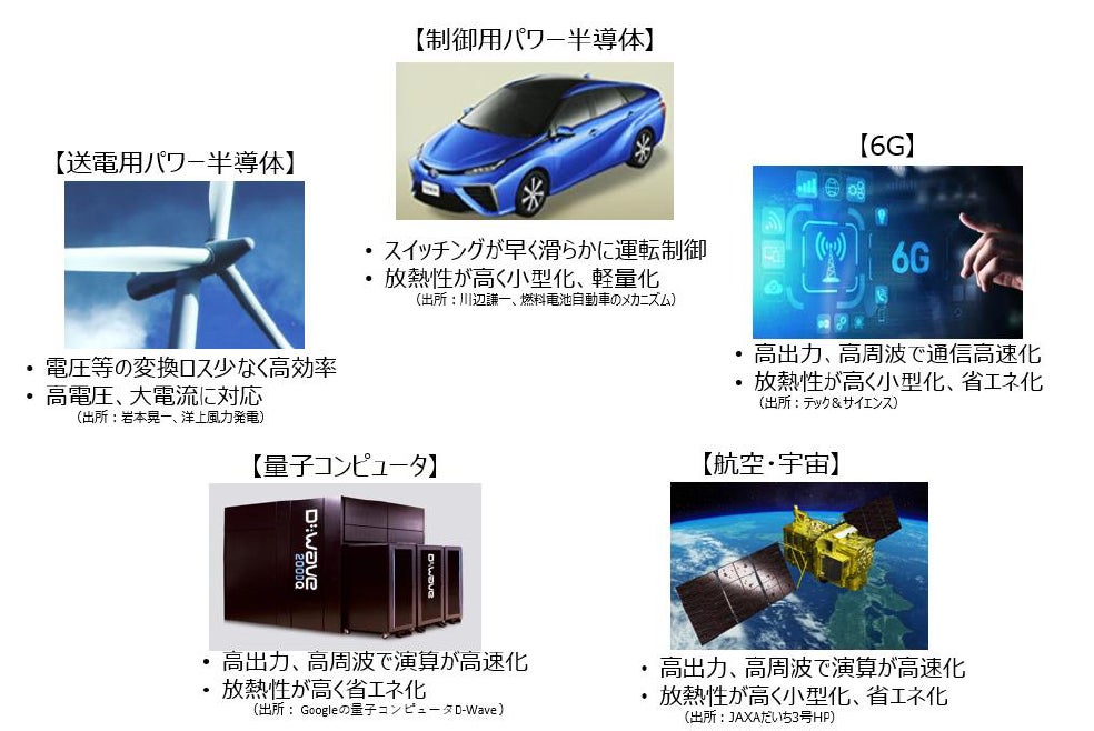 ダイヤモンド半導体は、マイクロ波帯、ミリ波帯無線の高性能通信機器、電気自動車や量子コンピュータなどへの活用が期待されています。佐賀大学とJVCケンウッドは、ダイヤモンド半導体の社会実装化を推進し、将来のデジタル社会の実現に向けた社会課題の解決を目指してまいります。