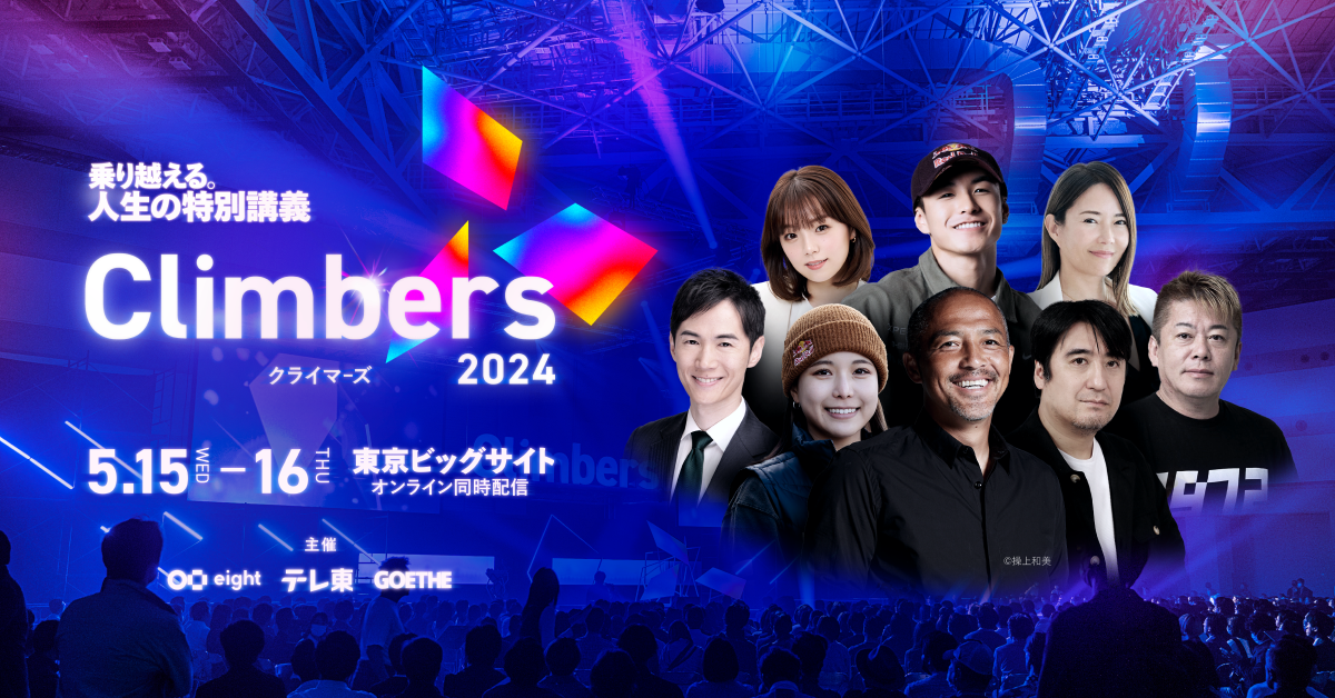 Sansan株式会社が提供する名刺アプリ「Eight」は、日本最大級のビジネスカンファレンス「Climbers 2024」をはじめとした「Climbers Series」を2024年5月15日(水)から5月16日(木)の2日間、東京ビッグサイトで開催します。「Climbers 2024」では、元サッカー日本代表 小野 伸二氏やテレビプロデューサー 佐久間 宣行氏など、「乗り越える」をテーマに各界のトップランナーが「人生の特別講義」をお届けします。また会場内での名刺交換はEightが提供する「タッチ名刺交換」を推奨し、「紙の名刺がいらない展示会」の実現を目指します。