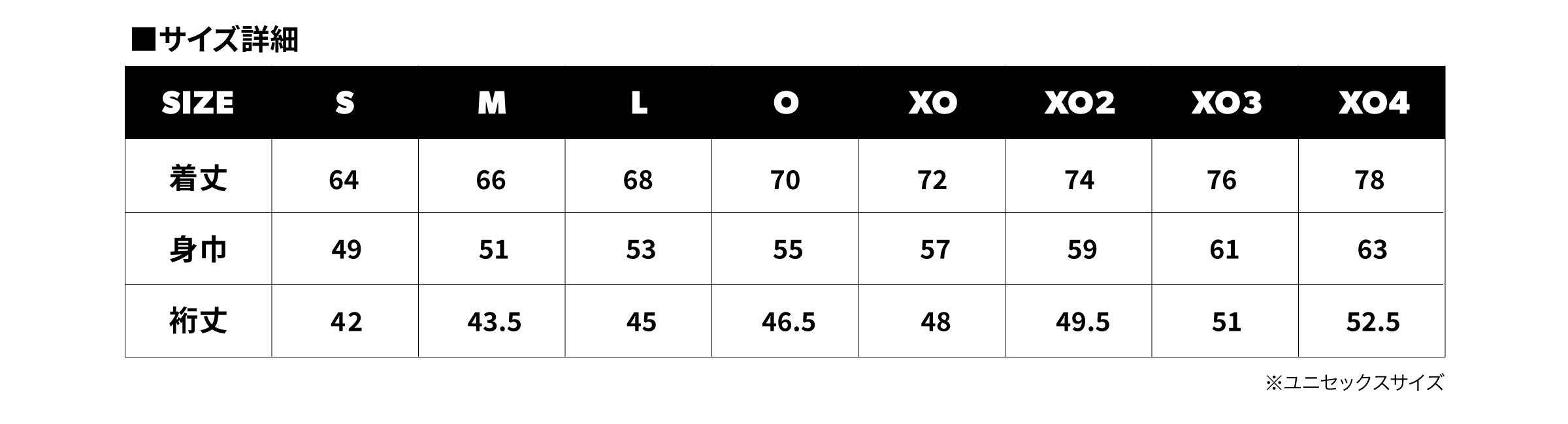 Size:S・M・L・O・XO・XO2・XO3・XO4(ユニセックス)