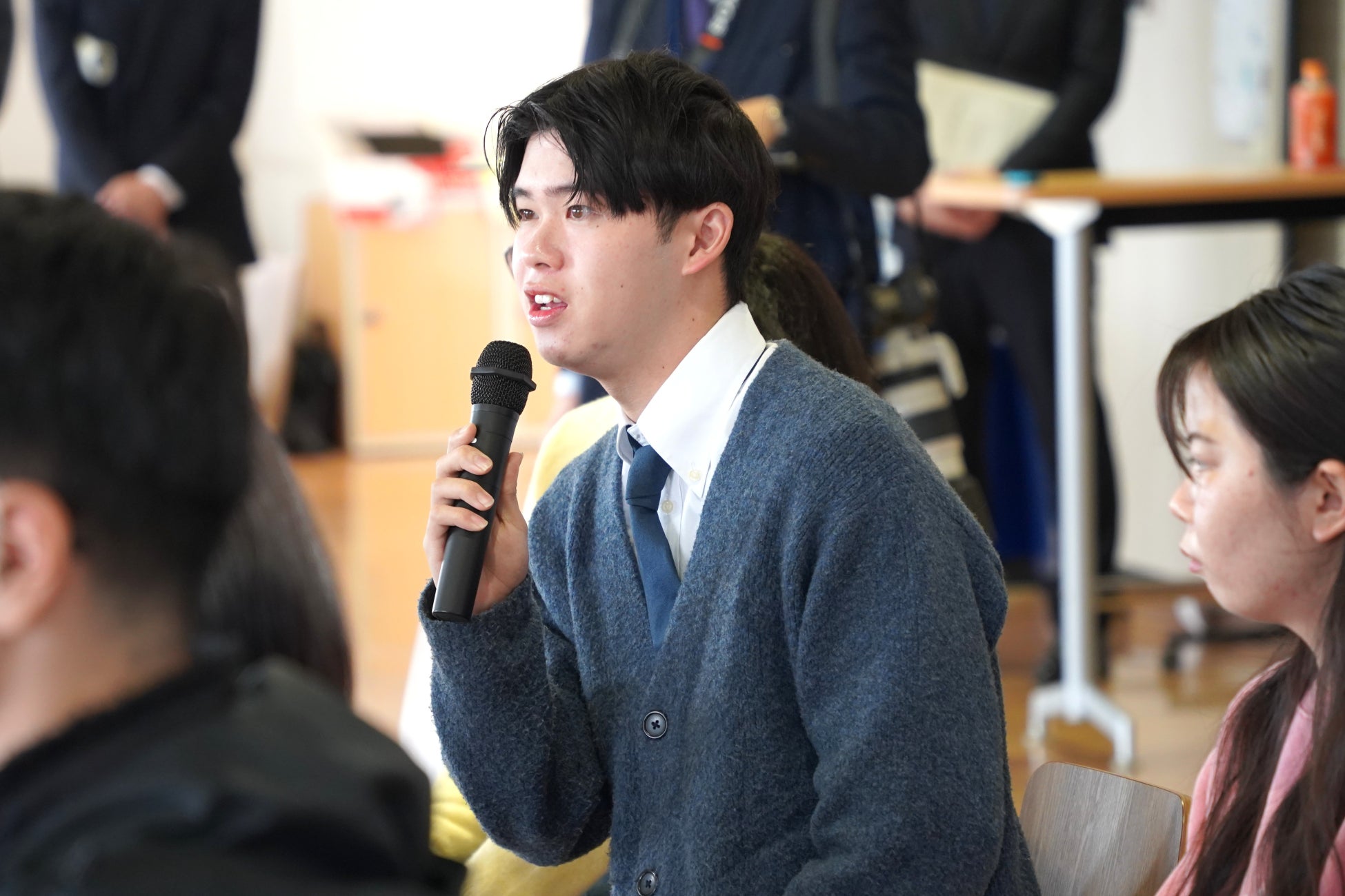 座談会の後半は、学生からの質問を中心に進行しました。「広島だからこそできることは何か」「若い世代が地域で挑戦するために大切なことは」といった問いに対して、登壇者はこれまでの選択や迷い、失敗も含めた経験を率直に語りました。