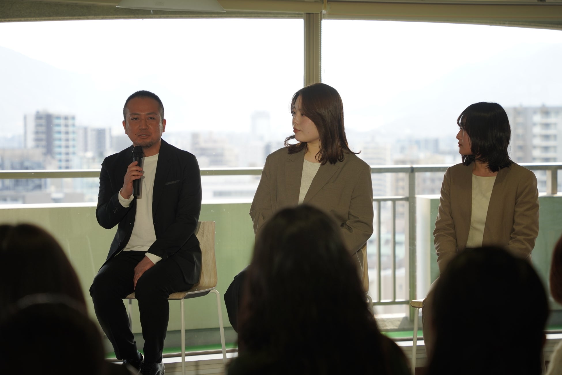 仕事のやりがいやキャリアだけでなく、家族との時間、自分らしい暮らし方を見つめ直した結果として広島を選んだという話に、学生たちは静かにうなずきながら聞き入っていました。