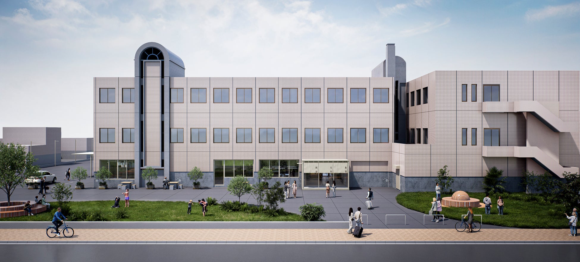 温泉に立ち寄ることで島との関わりが始まる人もいれば、食を通して風土を知る人、滞在をきっかけに暮らしに触れる人もいる。その日の気分や目的に応じて自由に利用できる場を目指しました。外構は公園のように開放的で、船を待つ時間や朝の散歩道、季節行事の会場としても活用できる可変的なスペースです。