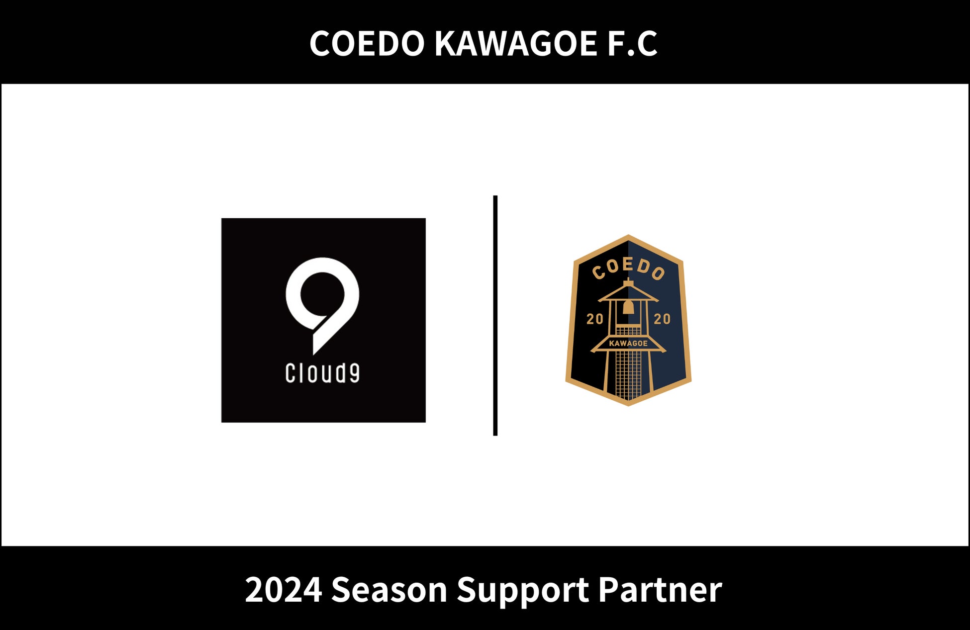 COEDO KAWAGOE F.Cを運営するCOEDO KAWAGOE F.C株式会社(埼玉県川越市、代表取締役 有田和生)は、開発と人材の両軸からITを活用して新しいワクワクを創造する株式会社クラウドナイン(東京都目黒区、代表取締役 CEO 小森隆輝)と2024シーズンのオフィシャル・サポートパートナー契約を締結したことを発表いたします。