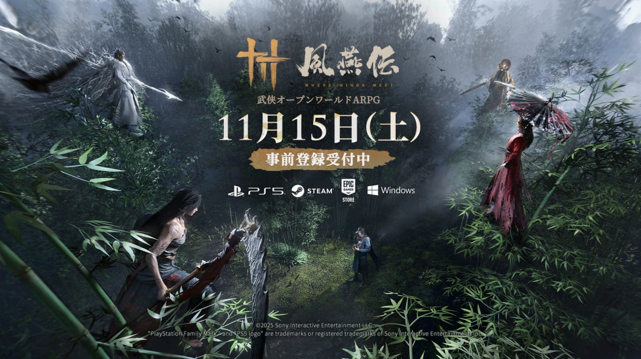 Everstone Studio は2025年8月20日(水)に、ゲームズコム(gamescom)にて、PC および PlayStation®5 で待望の武侠オープンワールドアクションアドベンチャー RPG『風燕伝:Where Winds Meet』を11月15日(土)に正式リリースすることを発表した。現在PlayStationストアにて予約受付中、専用予約パックも同時に販売開始。