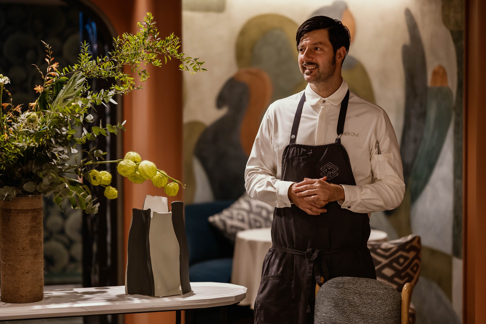 アンティモ・マリア・メローネ氏は「ARMANI / RISTORANTE」のエグゼクティブシェフを務めるカルミネ・アマランテと同郷・ナポリ出身。ベルリン、パルマ、香港、マカオの名店で研鑽を積んだのち、2021年9月「ESTRO」を創業以降シェフを務めます。