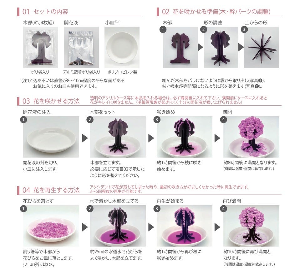 材質:木部/紙、トレイ/PP、開花液/水、リン酸塩、塩化ナトリウム他
