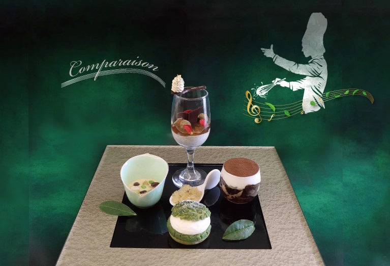 【ホテルグランヴィア和歌山】4種類のお茶(ほうじ茶・アールグレイ・抹茶・和紅茶)スイーツを食べ比べ “お茶のコンパレゾン” ~パティシエが奏でる四重奏~