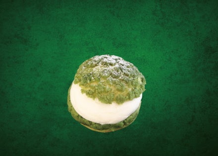 カスタードと抹茶のクリームを包み込む、たっぷりの生クリームが味わえる抹茶のシュークリーム。ほのかな抹茶の苦みとクリームの甘味が相まって素敵なハーモニーを生み出します。