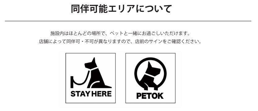 ペット連れの方も、そうでない方も、みんなが気持ちよく過ごせるよう、施設全体でルール啓発を行い、思いやりのあるルールを大切にした空間づくりを進めていきます。