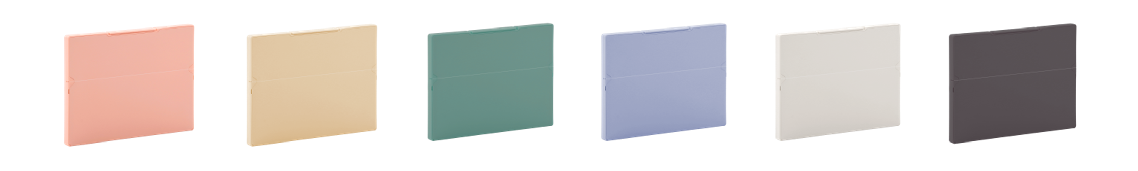 カラーは全製品共通で、肌なじみのよいニュアンスカラーのピンク、ベージュ、ミドリ、ブルーグレー、シロ、クロの6色展開です。