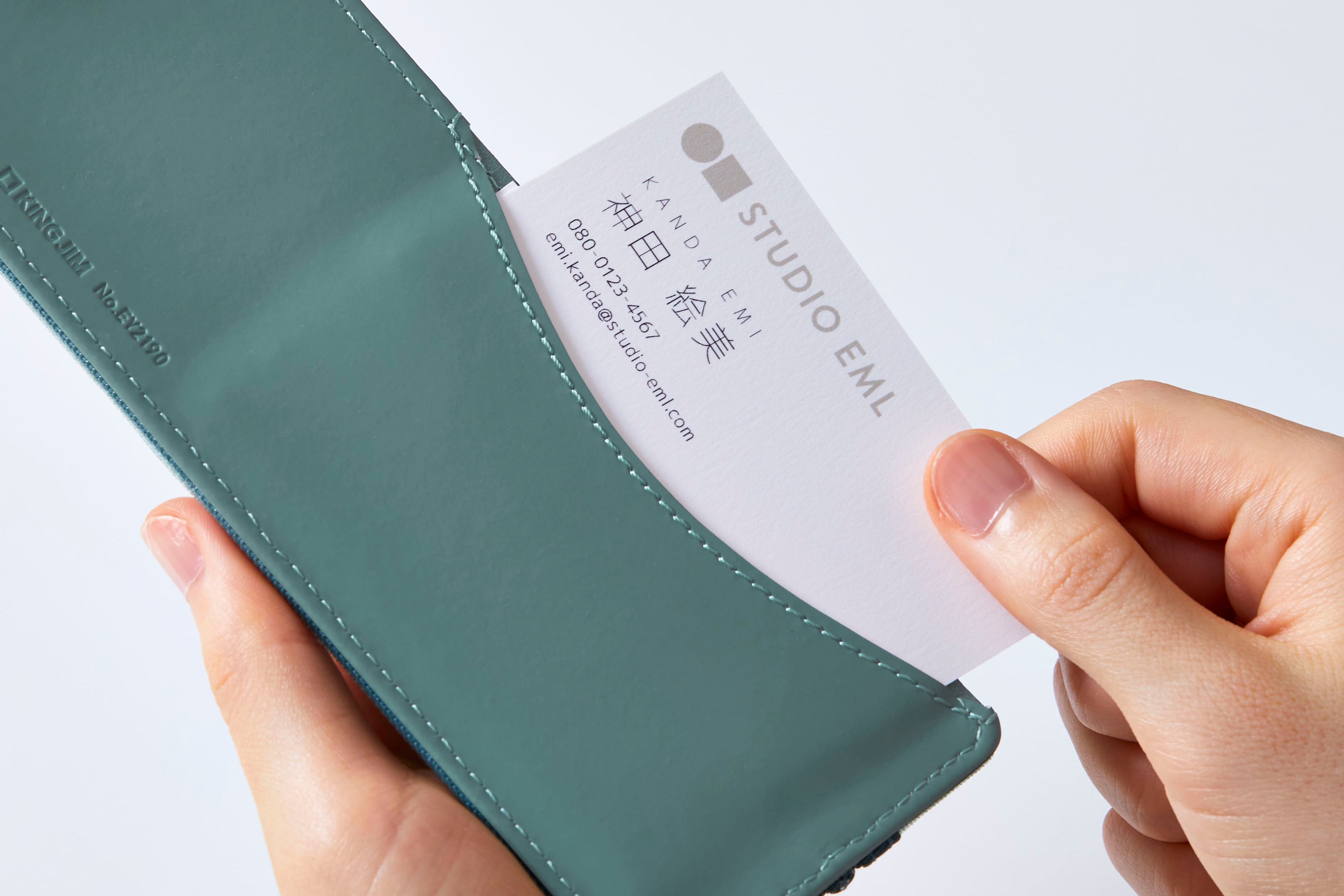 ウラ面には名刺ポケットが付いており、いざという時の名刺のストックを折り曲げずに持ち運ぶことができます。また、社員証や学生証などのカード類の収納にも便利です。