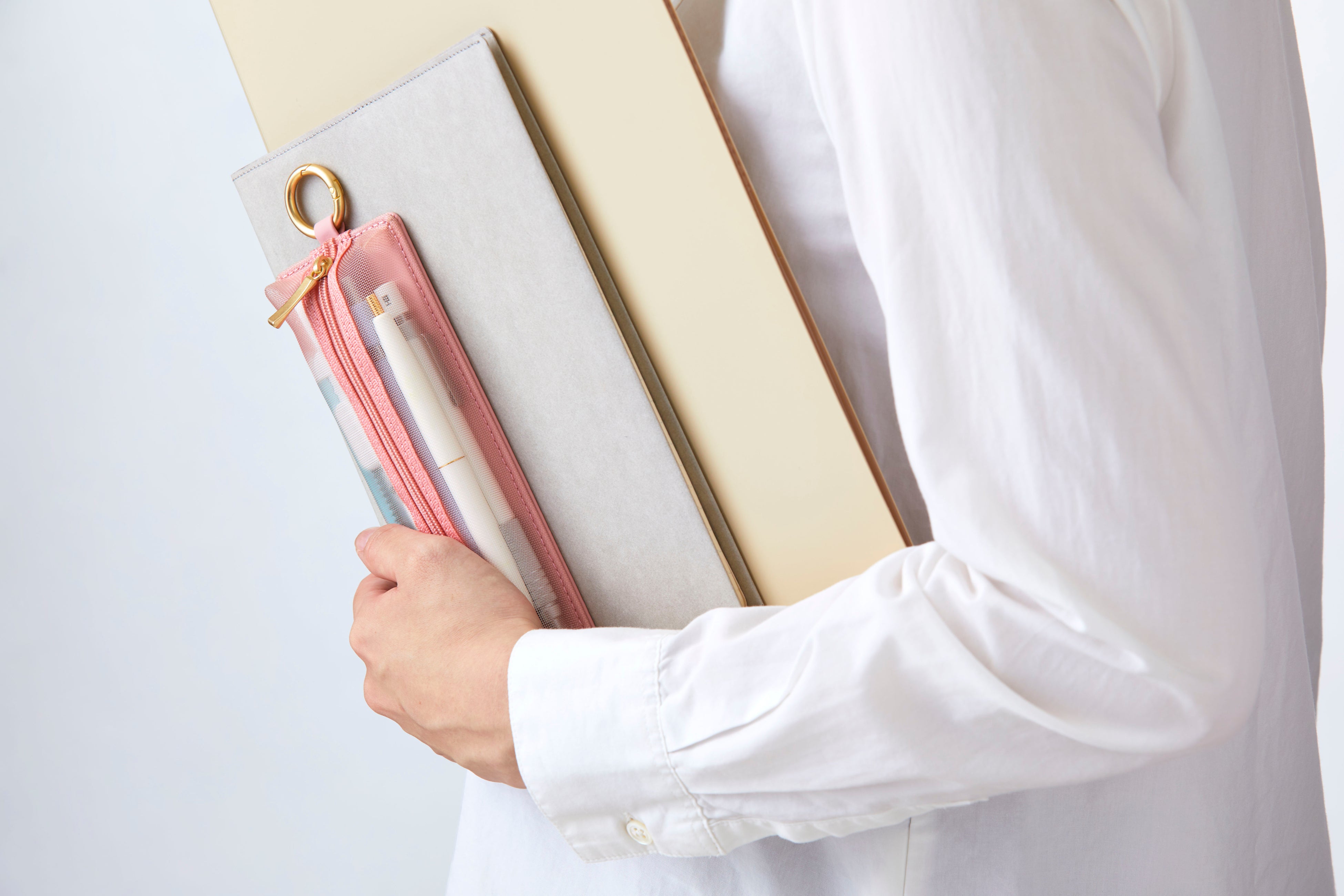 付属のカラビナでカバンの内側に引っ掛ければ、外出先でもペンをすぐに取り出すことができます。また、お手持ちのショルダーバッグなどに取りつければ、ワークポーチのようにもお使いいただけます。
