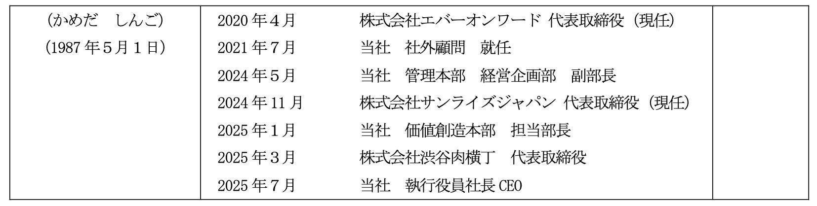 新任代表取締役社長の亀田信吾は、当社指名諮問委員会の選考・助言を経て、2025 年7月 14 日付で執行役員社長 CEO に就任しておりましたが、本日開催の定時株主総会において取締役に選任され、当初の予定のとおり代表取締役に選任されました。