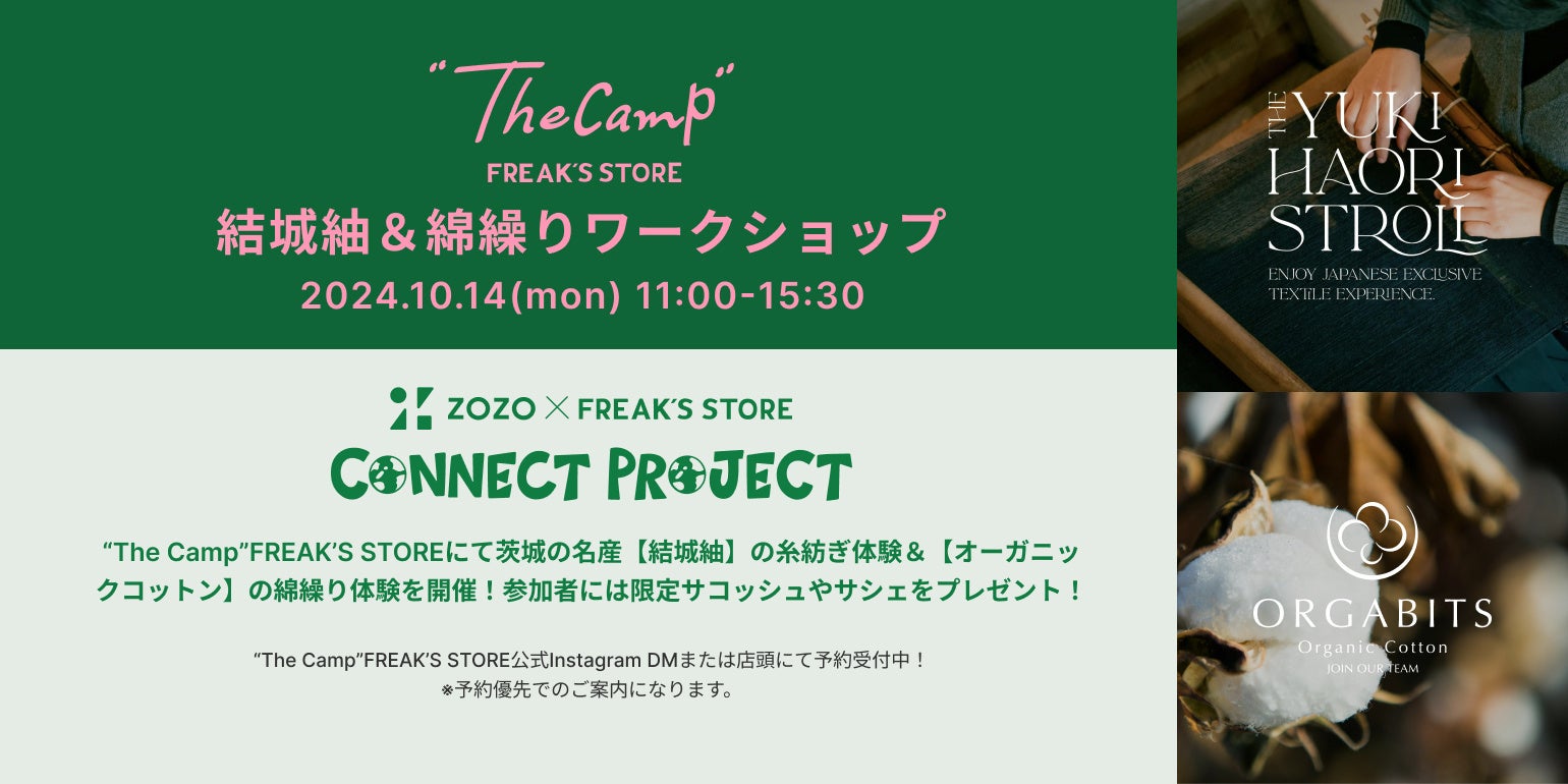 “The Camp”FREAK’S STOREにて茨城の名産【結城紬】の 糸紡ぎ体験(講師:結城紬rico)&【オーガニックコットン】の綿繰り体験を開催! 参加者には限定サコッシュやサシェをプレゼント!ご参加は"The Camp" FREAK'S STOREインスタグラムDM・店頭または下記より予約受付中!