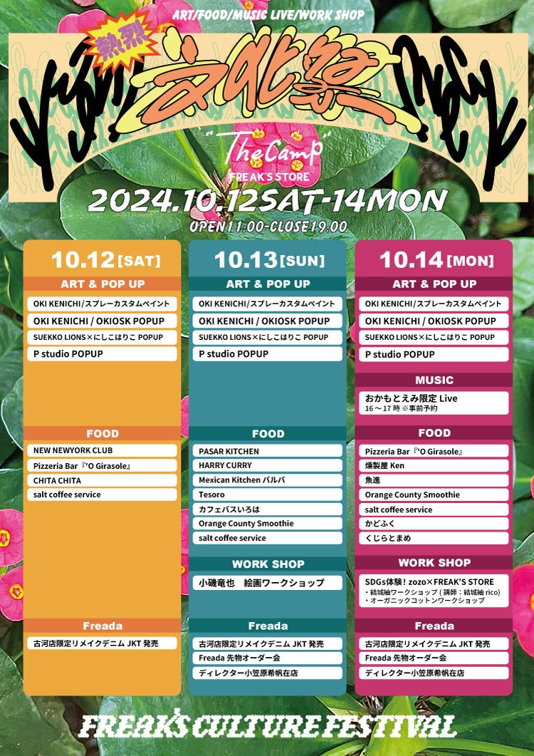 10月12日(土)・10月13日(日)・10月14日(月・祝)の3日間、”The Camp”FREAK’S STOREでは