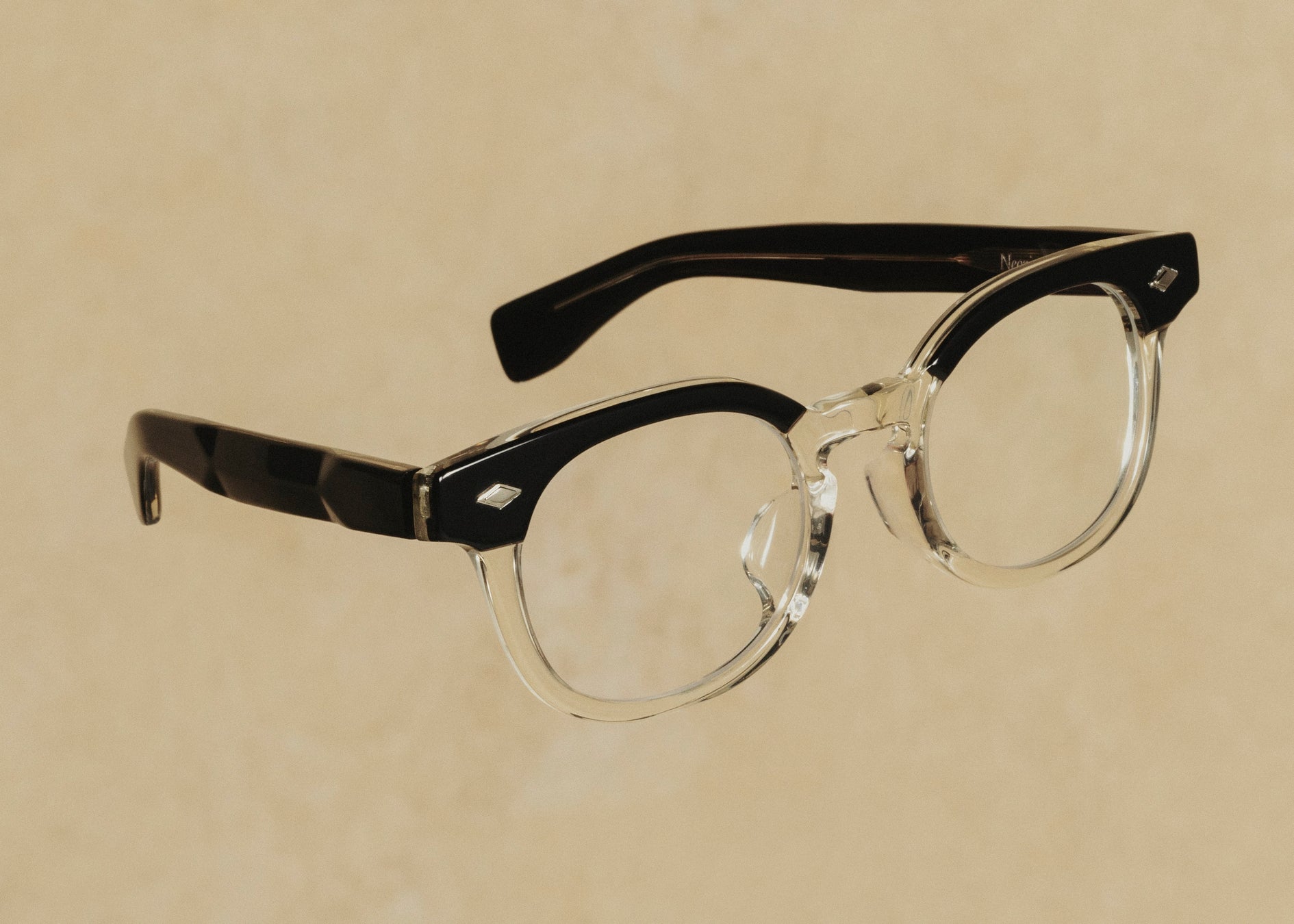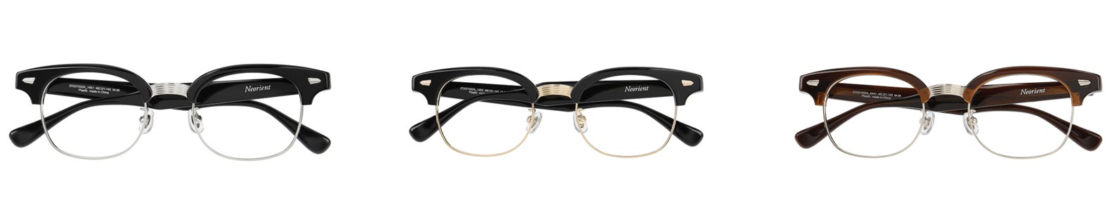眉部分に段差をつけ、眉ラインを描くように一段高く浮き立たせた立体的なカットや、フレームの形によってテンプル部分のカッティングを変更。柔らかい雰囲気のウェリントンやボストンは、男性らしさを演出できる強めのカット。スクエアやブロータイプは、甲丸のあるカットを施すことでかけやすいデザインに。柔らかな光の遊びを生む、さりげなくも特徴的な『Neorient(ネオリエント)』を代表するデザインです。