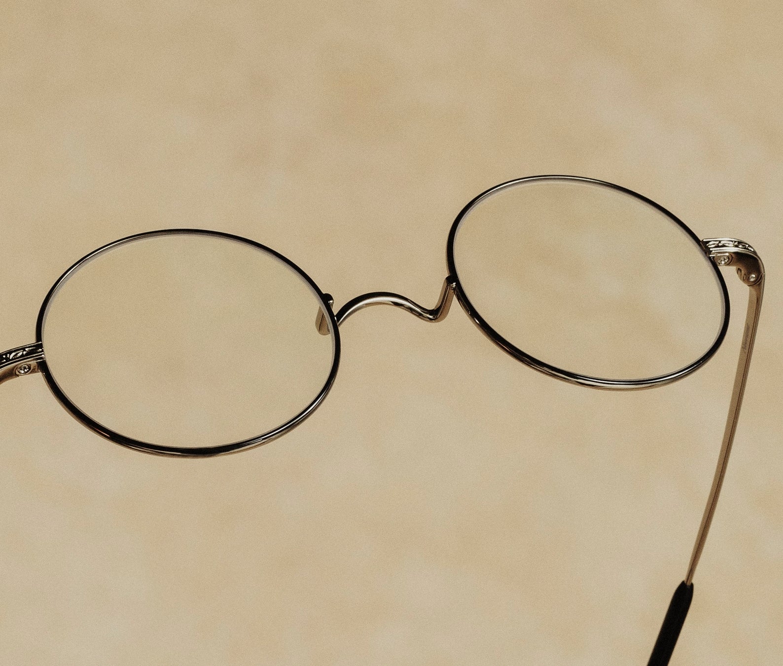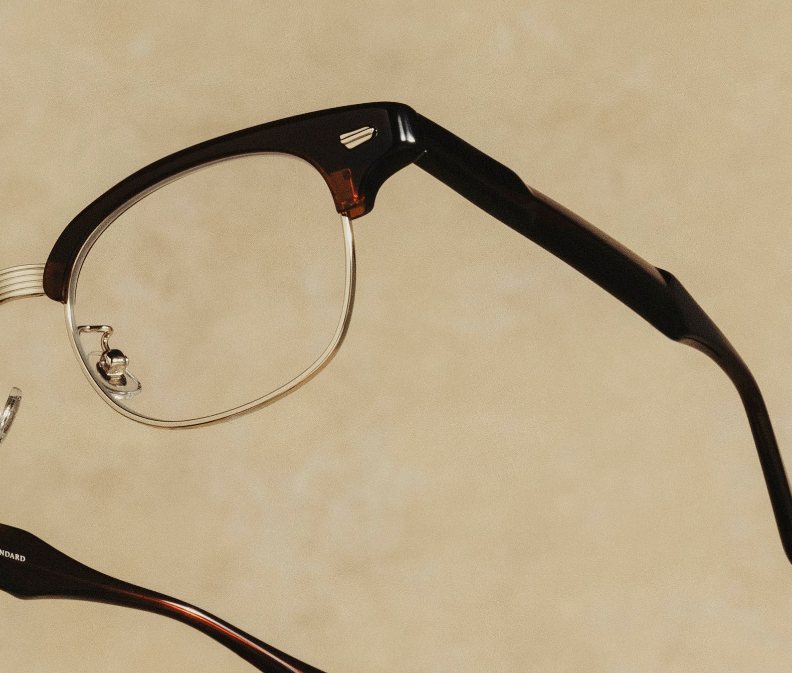かつて多く流通していたクリングスや鼻パッドを排除したミニマルな表情のブリッジデザイン。日本ヴィンテージの代表格であり、顔に圧倒的な知性と佇まいを演出します。*