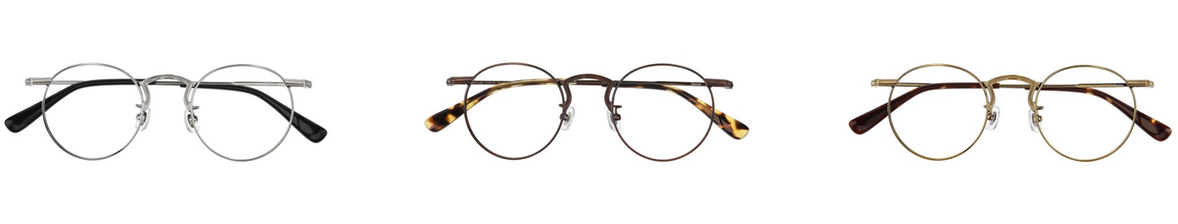 小ぶりなメタル丸メガネ。パッド無しの一山ブリッジまで再現したマニアックなシルエット。小ぶりのサイズ感で知的な印象に。Zoffでは事例が少ない一山ブリッジで、レトロ&ミニマルに仕上げた一品。